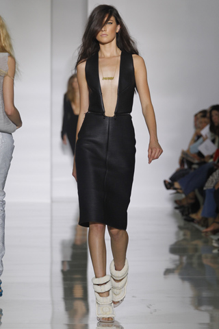In order for his vision to come to life, Kanye enlisted the help of Bristish designer Louise Goldin and Givenchy’s Riccardo Tisci. Models Chanel Iman, Karlie Kloss, and Jourdan Dunn walked the runway to tunes by Waka Flocka Flame.