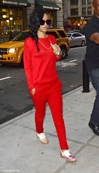 I am loving Rihanna’s all red outfit!!! She was spotted in NYC heading to dinner with her best friend, Melissa (not pictured). She completed her all red look with Christian Louboutin’s 20th Anniversary Trash Oxfords.